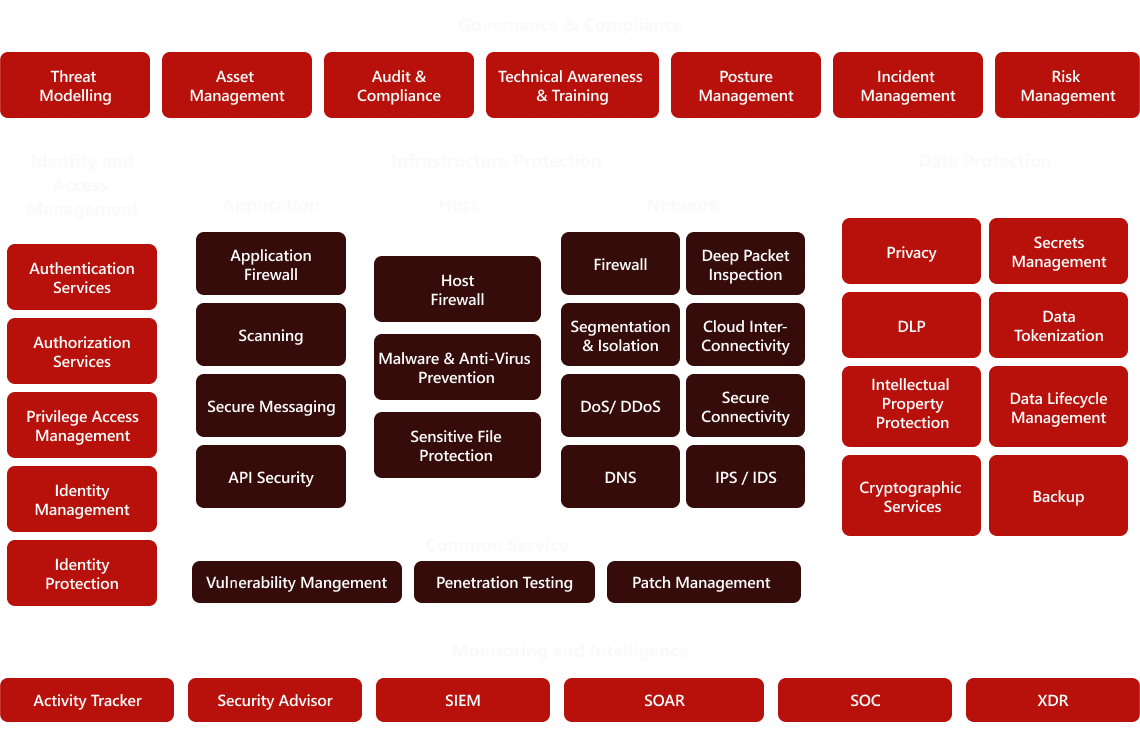 Help AG’s Cloud Security services deliver a comprehensive suite of technologies and practices designed to govern identities, restrict networks, protect data, and secure workloads, all while ensuring compliance with essential governance frameworks.